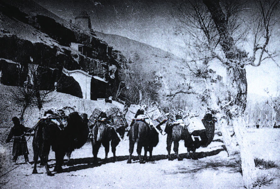 1914年俄国探险家奥登堡组织的考察队装载文物离开莫高窟